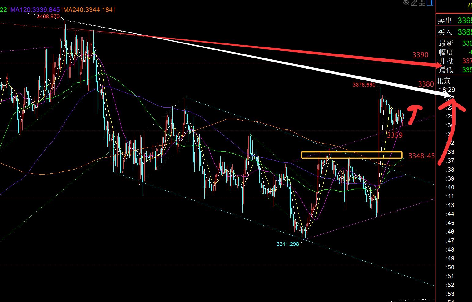 第一,黄金方面:上周五走势预判原本是认为守住周四低点3325,回踩继续看涨,选择靠近凌晨横盘支撑,以及3330分批去看涨,但日内走法却是一路震荡慢下滑,就有所担忧美盘会再向下打压一波才能企稳上拉,因此欧盘果断反弹3335一线总体本钱调仓,幸亏刚好触及此位置,给了出逃机会;而对于美盘来讲,研报思路依旧是建议逢低看涨,不去追空,支撑当时留意两个3325、3315,触及企稳看涨,当22点收报底部大阳K时,就基本有企稳信号,但为了规避22点后的老包讲话,就暂时未去急于出手,结果直接瞬间大幅急拉,也就完美踏空这一波短期涨幅;虽然日内小方向变化急速,反复折腾扫盘,但对于大方向,一直是坚守趋势看涨,也强调3300之上是上周逢低炒底的时机,最终大幅拉高也自然是在大趋势预料之中;