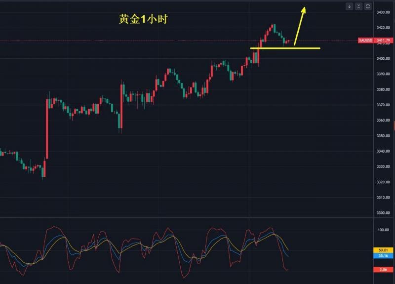 今天,3410-05的范围内可以直接多,首要目标看到3428-30美元,一旦突破7月22日盘中高点3435将向下一站3447美元迈进靠拢!