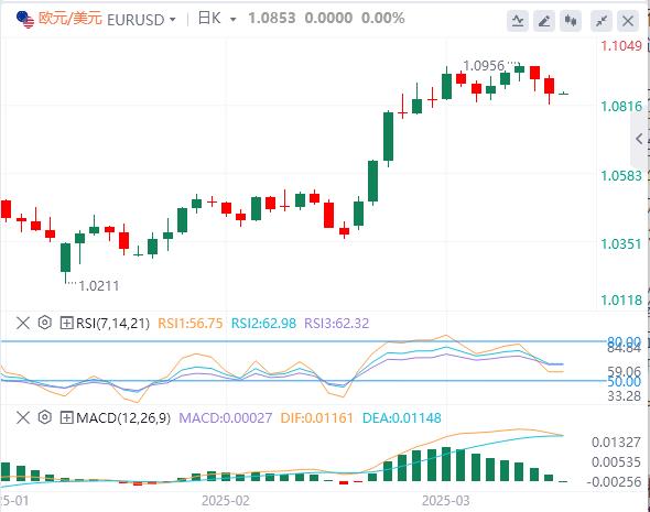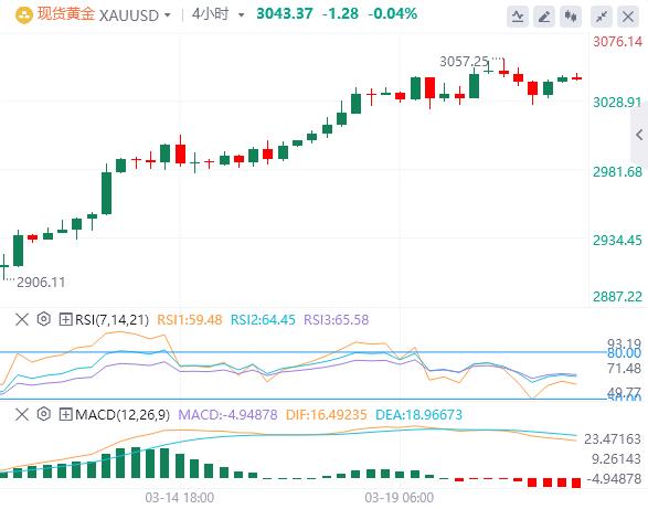 3月21日,北京时间周五亚市早盘,美元指数徘徊在103.82附近。周四,美元指数美盘初站上104关口,创近两周新高,最终收涨0.331%,报103.81。美债收益率多数收跌,收益率曲线持续陡峭化,基准的10年期美债收益率收报4.235%;对货币政策更敏感的两年期美债收益率收报3.974%。现货黄金在盘中早些时候创下3057.25美元/盎司的历史新高后回落,最终收跌0.09%%,报3044.73美元/盎司。现货白银连续第二日下跌,最终收跌0.64%,报33.57美元/盎司。由于美国发布对伊朗的新制裁,国际油价走高。WTI原油美盘期间持续拉升,回升至68关口上方,最终收涨1.94%,报68.32美元/桶;布伦特原油收涨1.81%,报71.84美元/桶。