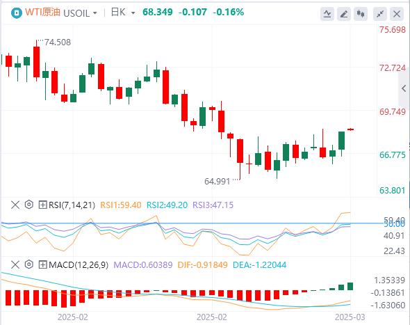 周五亚盘,原油交投68.34附近。受美国加大对伊朗原油出口限制的影响,国际油价上涨,加大了德黑兰(Tehran)在新核协议谈判中的压力。美国财政部对一家中国炼油厂及其首席执行官实施制裁,指控其购买伊朗原油。此外,美国还制裁了多艘疑似属于“影子舰队”的油轮,这些船只被指控专门运输伊朗原油,规避国际制裁。与此同时,特朗普政府计划延长雪佛龙公司(ChevronCorp.)在委内瑞拉的运营许可至少30天,暂时缓解了市场对供应短缺的担忧。