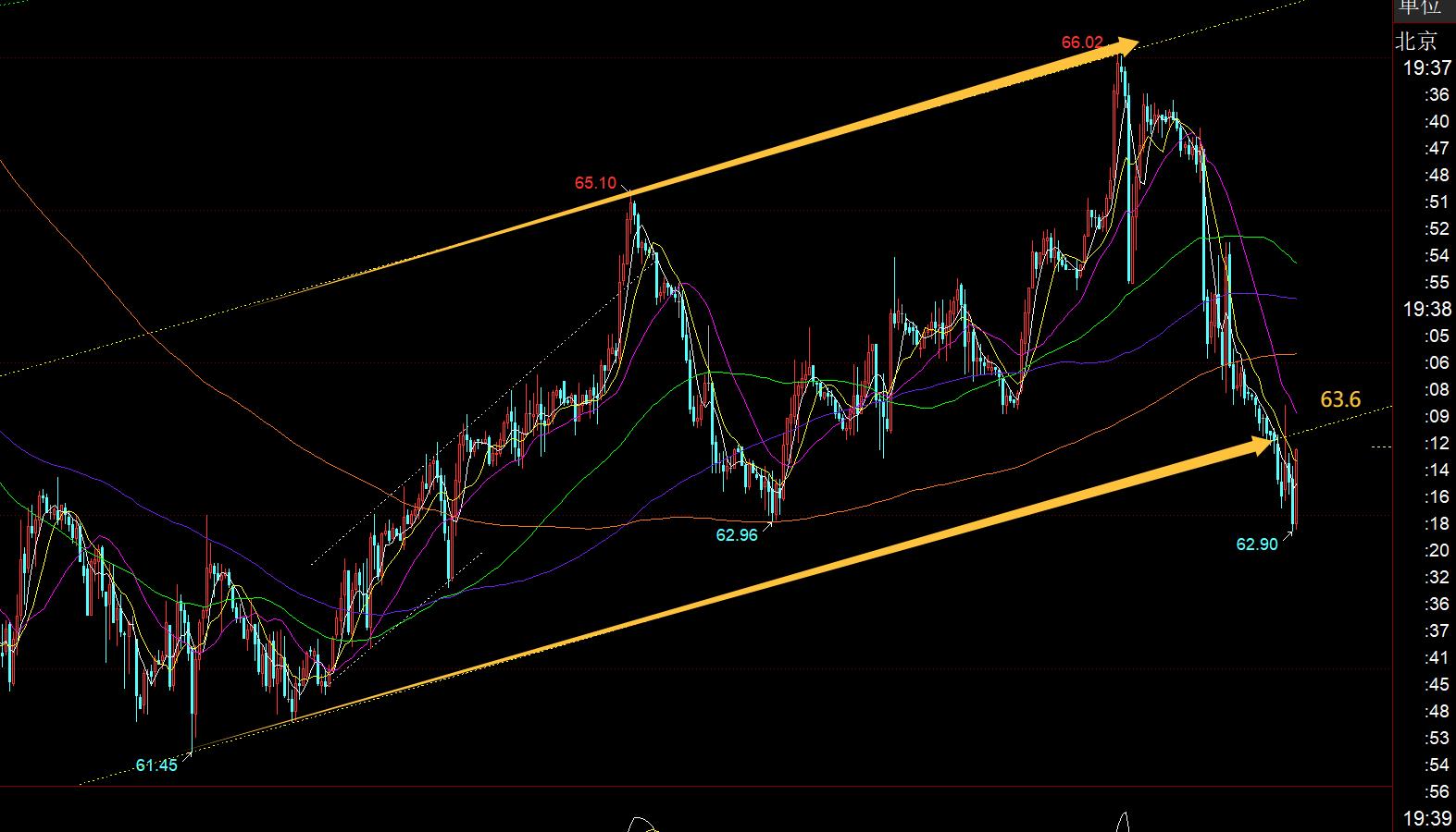 原油方面:日线级别,原油大阳或大阴都难延续,整体围绕区间性震荡;昨日收大阴,今日也未必能很好的延续,小时线macd处于底背离状态,拉低容易突袭反弹;今晚留意63.6通道反压,一旦突破站上,则又会回归通道内看反弹至上轨;或者再破新低,继续背离之后择机企稳低多看反弹,最好是有效站上小时线10均线后,再回踩确认去看反弹,目前还处于一定慢跌中,等待;