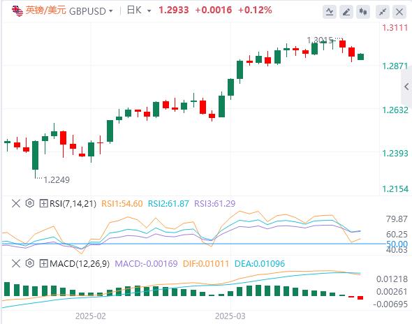 美元指数:截止发稿,美元指数徘徊在104.03附近。美联储维持利率不变,重申2025年两次降息的预测。美联储主席鲍威尔淡化了关税对通胀的影响,称其只是暂时影响,但承认很难评估其更广泛的影响。尽管鲍威尔表示,目前经济衰退的风险仍然相对较低,但衰退风险仍有所上升。美国初请失业金人数低于预期,推动美元突破104.00。技术面上,美元指数最近的阻力位位于104.30–104.50区间。突破104.50水平将推动美元指数走向下一个阻力位,即位于105.50–105.70区间。