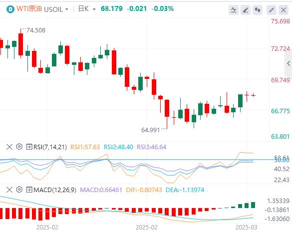 周一亚盘,原油交投68.17附近市场正在从新的地缘政治风险和主要生产商重新开始的供应纪律中汲取力量,尽管移动平均线普遍呈下跌趋势,但加强了看涨情绪。美国财政部对一家中国炼油厂及其首席执行官实施制裁,指控其购买伊朗原油。此外,美国还制裁了多艘疑似属于“影子舰队”的油轮,这些船只被指控专门运输伊朗原油,规避国际制裁。