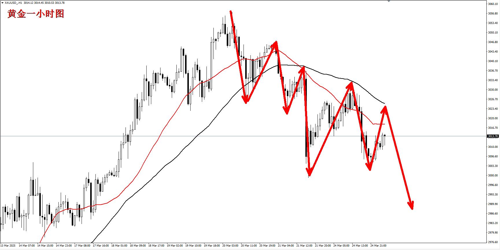 黄金市场不断压缩,高点不断向下调整,市场已经走了一个完整的调整浪,并且还有进一步下探的空间,昨日让大家高位做空已经大获全胜收割离场,而今日操作思路依旧保持不变,市场反弹继续保持看空,今日低点看到3000点之下!