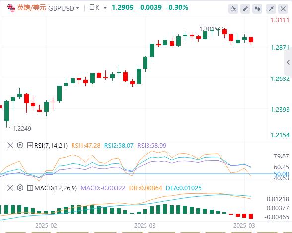 英国国家统计局(ONS)周三早些时候报告称,以消费者价格指数(CPI)变化衡量的年度通胀率从1月份的3%降至2月份的2.8%,低于市场预期的2.9%。不包括波动较大的食品和能源价格的核心CPI在此期间上涨了3.5%,而1月份的涨幅为3.7%。按月计算,CPI在之前下跌0.1%后上涨0.4%。英镑/美元在这些数据之后难以获得牵引力,并在1.2950下方的负值区域交易。当天晚些时候,财政大臣将在下议院发表英国2025年春季声明。