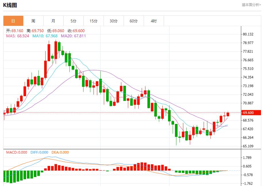 原油市场:截止北京时间20:20,美油上涨,现报69.580,涨幅0.86%。纽市盘前,美国原油价格在最新的盘中交易中扩大了涨幅,在设法发泄超买饱和后,随机指标出现了积极信号,短期内上行修正趋势占主导地位,因为价格沿着趋势线交xn--xm-6d1dw86k.com易。