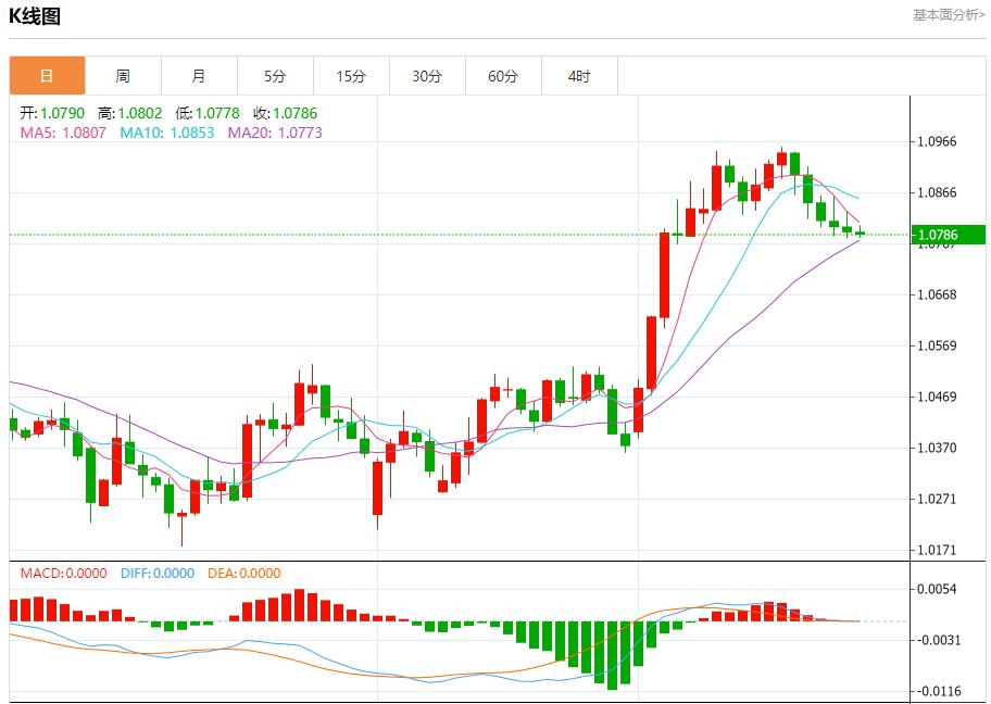 欧元/美元:截止北京时间20:20,欧元/美元下跌,现报1.0787,跌幅0.04%。纽市盘前,在最近的盘中交易中,欧元/美元价格小幅走高,同时在双顶形态的影响下,短期内沿着向下的修正趋势线移动,因为价格试图弥补最近的一些损失。