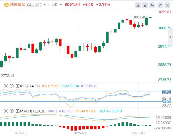 周五亚盘,黄金交投3061.83附近。美国总统特朗普突然宣布对进口汽车加征25%关税,犹如向全球市场投下一枚经济炸弹。加拿大、欧盟、日本等盟友迅速亮出反击姿态,海外股市剧烈震荡,跨国车企陷入恐慌,一场波及全球的贸易对抗正式拉开序幕,黄金再度获得避险资金青睐,现货黄金周四(3月28日)最高触及3059.35美元/盎司,再度刷新历史记录高点。在美联储上周决定维持指标利率不变后,投资者目前正在等待周五公布的美国个人消费支出数据,以判断进一步降息的轨迹。