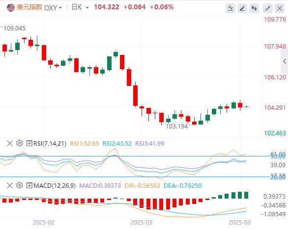 3月28日,北京时间五四亚市早盘,美元指数徘徊在104.32附近。周四,因特朗普的关税政策为美国经济带来不确定性的前景,美元指数全日维持下行趋势,最终收跌0.37%,报104.28。基准的10年期美债收益率收报4.3660%;对货币政策更敏感的两年期美债收益率收报4.0020%。尽管美国去年第四季度经济增长快于此前预期,但投资者更担心特朗普宣布的新汽车关税。现货黄金再创新高,将历史高点刷新至3057.85美元/盎司,最终收涨1.23%,报3056.76美元/盎司。现货白银最终收涨2.31%,报34.40美元/盎司。因投资者仍在评估原油供应收紧以及美国新关税及其对世界经济的预期影响,国际油价窄幅震荡,WTI原油最终小幅收跌0.05%,报69.84美元/桶;布伦特原油收跌0.96%,报73.30美元/桶。