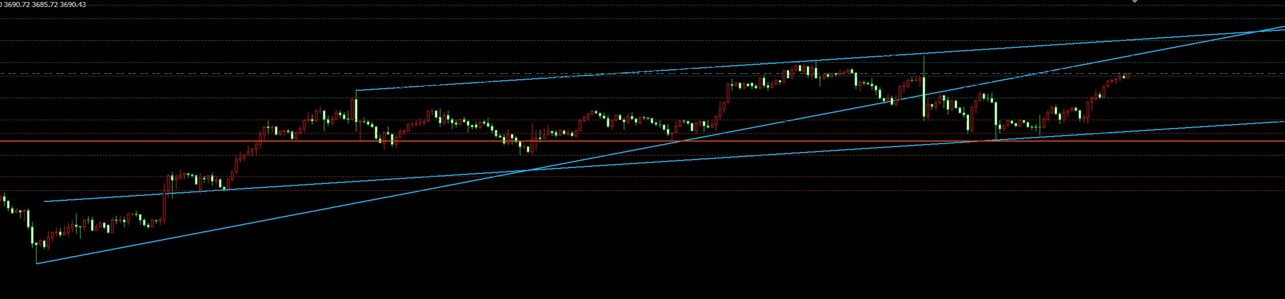 操作上:回落67-63区域多,防守6块,假设一直不给四小时走成弱空后就直接先空,给多点区域就直接同仓位对冲就可以,另外就是见上升三式的边线3723附近配合五分钟弱空信号进场,其次就是四小时上线这里95-96损98.激进博弈回落一波,