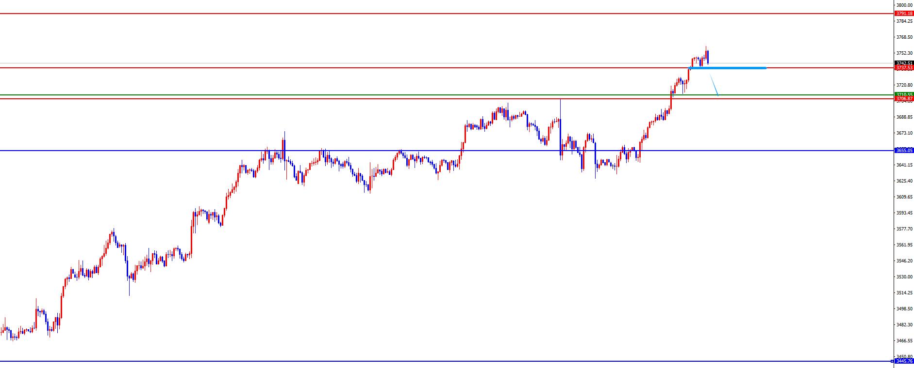 黄金关注早盘低点3738得失,一旦下破需要关注调整