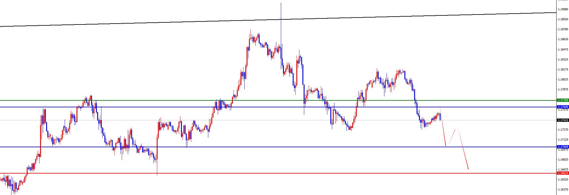 欧美1.1760-70区间空,防守40点,目标1.1700-1.1660