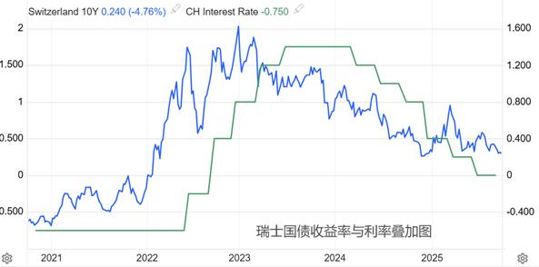 2022年12月,瑞士十年期国债收益率达到阶段峰值1.623%,之后收益率持续下行,目前最新值为0.24%。瑞士央行基准利率在2023年6月触顶,持续八次按兵不动后,瑞士央行于2024年3月启动降息,目前已经达到零利率,继续下跌的空间已经不存在。极端情况下,比如通胀率严重萎缩,瑞士央行可能开启负利率政策。在主流中央银行维持高利率的环境下,瑞士央行执行负利率政策的概率极低。