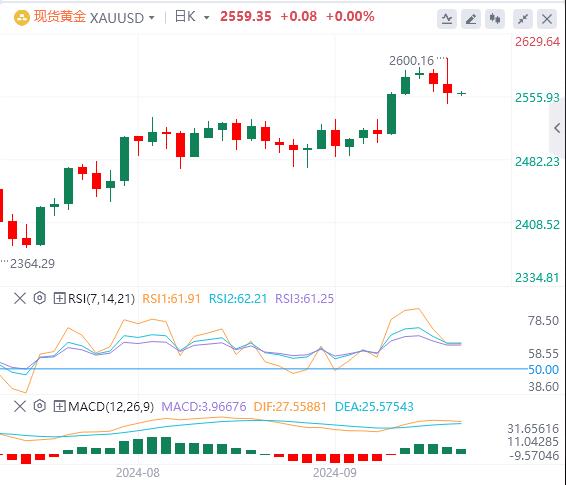 周四亚盘,黄金交投于2559.35附近。在美联储周三做出货币政策决定之前,黄金价格几乎没有变化,因为美元在强劲(相对于市场普遍)的8月美国零售销售报告后出现反弹。因此,美国国债收益率上涨,美元小幅走高,限制了黄金的上行空间。根据CMEFedWatchTool的数据,对美联储将借贷成本降低5xn--xm-6d1dw86k.com0个基点(bps)的预期仍为63%,而降息25个基点的可能性为37%。