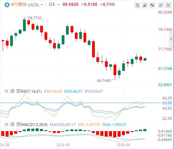 9月19日,北京时间周四亚市早盘,美元指数徘徊在101.33附近。周三,因美联储降息50个基点,美元指数呈V型走势,其盘中先大幅下挫,并一度逼近100大关,而后强势收复大部分失地,最终收跌0.07%,报100.94。美债收益率先跌后涨,基准的10年期美债收益率创一周来新高,收报3.705%;对货币政策更敏感的两年期美债收益率收报3.628%。现货黄金盘中一度冲上2600美元,续刷历史新高,但随后急坠超50美元,最终收跌0.4%,报2559.22美元/盎司。现货白银最终收跌1.92%,报30.09美元/盎司。国际油价有所下挫。WTI原油盘中多次测试70美元大关,但均未能站稳此处,并在美盘大幅下挫,最终收跌1.23%,报69.05美元/桶;布伦特原油收跌1.16%,报72.32美元/桶。