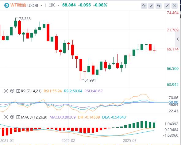 周一亚盘,原油交投69.86附近。受美国能源库存下降以及对全球供应收紧的担忧情绪提振,国际油价上涨。此前,美国总统唐纳德·特朗普(DonaldTrump)威胁对购买委内瑞拉原油的国家加征关税,引发市场对地缘政治风险升级的担忧。根据美国能源信息署(EIA)周三发布的数据显示,截至3月21日当周,美国原油库存减少330万桶,降至4.336亿桶,远超路透社调查中分析师预计的96.5万桶降幅。