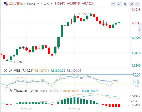 美元指数:截止发稿,美元指数徘徊在103.85附近。美国2月份核心PCE上涨0.4%,高于预期的0.3%,这加剧了人们对美国持续存在的通胀担忧。总体PCE增长率为0.3%,符合预期,没有给交易员带来重大意外。特朗普最近宣布的关税举措,包括从4月2日起对汽车征收25%的关税,扰乱了全球贸易情绪。欧盟官员警告称,如果关税按计划实施,欧盟将做出“有力且及时”的回应。技术面上,如果美元指数收于50MA下方104.04,它将向位于103.20–103.40区间的下一个支撑位移动。