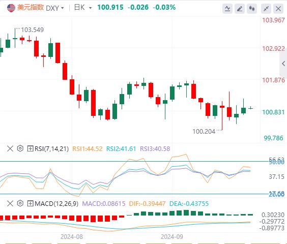 周一,美元指数整体呈倒V型走势,欧盘触及日高101.23后急转直下,尾盘再度抬头,截至目前,美元报价100.915。