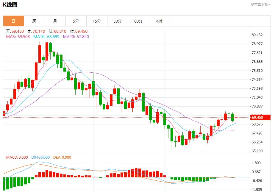 原油市场:截止北京时间20:26,美油上涨,现报69.430,涨幅0.13%。纽市盘前,美国原油价格在日内水平上进行横盘交易,同时寻求底部以帮助其聚集动能并反弹走高,因为它依赖于当前68.90美元的支撑,同时也依赖于50根蜡烛的SMA的支撑,为价格提供了一些帮助其反弹的动力。
