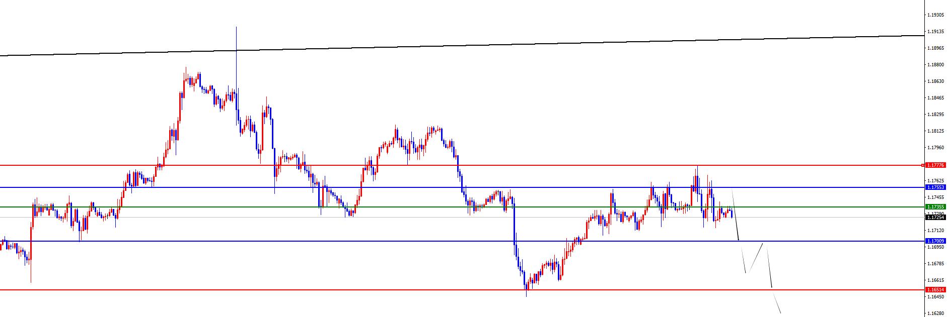 欧美1.1750-60区间空持有,关注1.1700下破,下破后关注1.1650