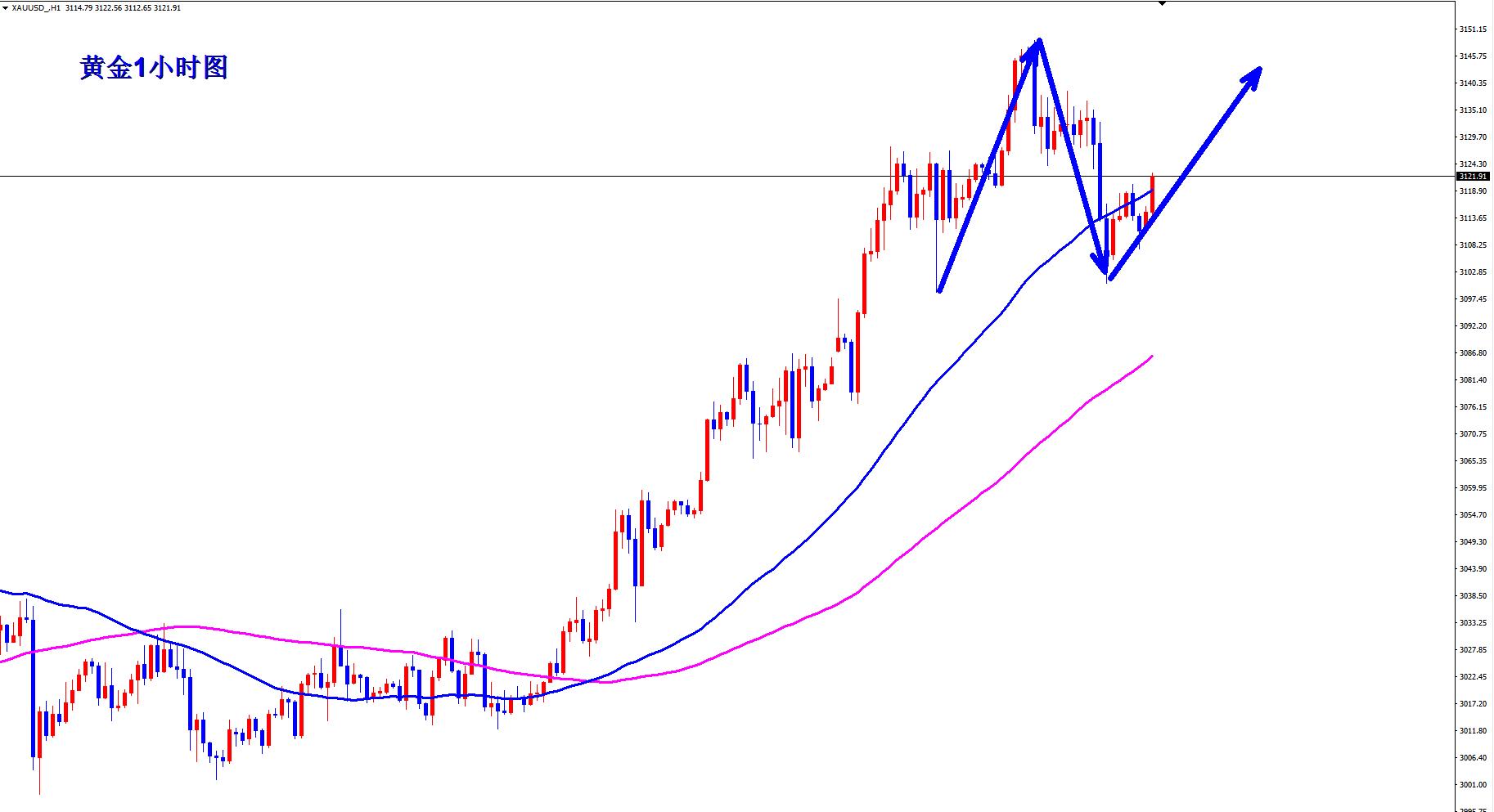 黄金昨日调整,不过避险再次支撑黄金探底回升,黄金多头坚守3100一线,那么黄金还是继续多,黄金多头还是有望更上一层楼,黄金早盘现价3121直接多!