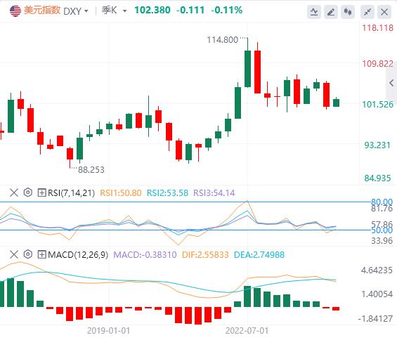 周一,美元指数在七周高位附近盘整,最终收涨0.01%,报102.49。基准的10年期美债收益率重返4%,截至目前,美元报价102.38。
