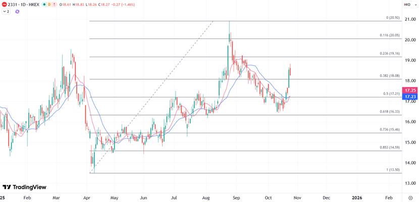 比如李宁入驻即时零售平台,对门店的拣货、打包效率和人员配置提出了更高要求。如果流程管理不当,可能会增加单店的运营成本。即时零售平台通常会收取一定的佣金,且促销活动可能更频繁,需要关注其对产品净利率的最终影响。李宁股价隔夜美股明显走高但今日港股走势未能跟进,刷新9月10日以来高位后回吐,如果日内收低于18港元,将面临跌至17.20港元的压力,届时关注日图主要均线形成的关键支撑。
