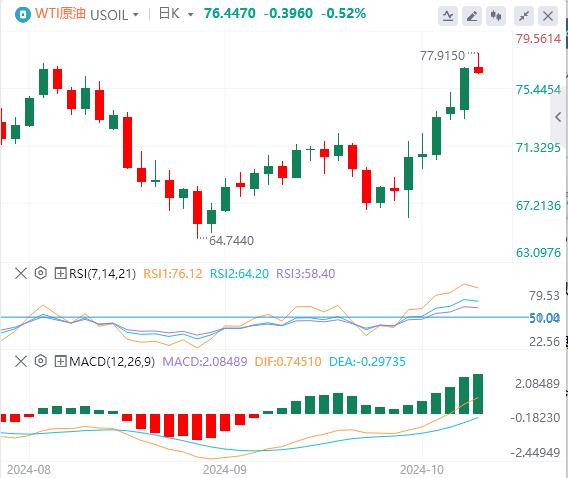 周二亚盘,原油交投76.44附近。由于中东地缘政治紧张局势升级引发了对以色列可能攻击伊朗石油基础设施的猜测,WTI价格延续了涨势。由于担心以色列可能以伊朗的石油工业为目标,以报复德黑兰的弹道导弹袭击,油价飙升。周一早些时候,伊朗支持的真主党向以色列第三大城市海法发射了火箭弹。据路透社报道,在加沙战争一周年之际,以色列计划加大对黎巴嫩南部的地面入侵,这引起了人们对该地区更广泛战争的担忧。