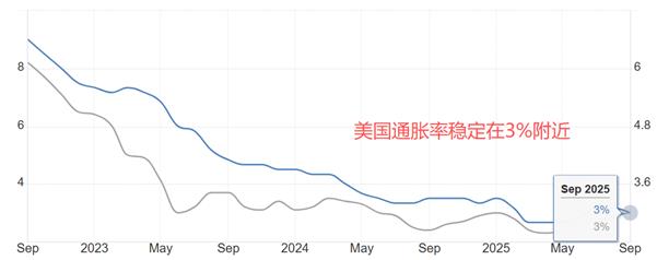 造成美联储内部对降息出现分歧的原因,是美国的劳动力市场数据和通胀数据不协调。传统经济学理论认为,劳动力市场疲软会导致商品需求减少,通胀率往往会下降。现阶段,美国的就业市场已经疲态尽显:新增非农就业人口持续低于10万人标准。然而,通胀率依然远高于美联储设定的2%目标。9月份核心CPI年率和名义CPI年率均为3%,高出目标水平1个百分点。更关键的,美国的通胀率已经进入平台期,继续下降的难度较大。如果美联储降息幅度过大,可能导致通胀数据快速反弹。