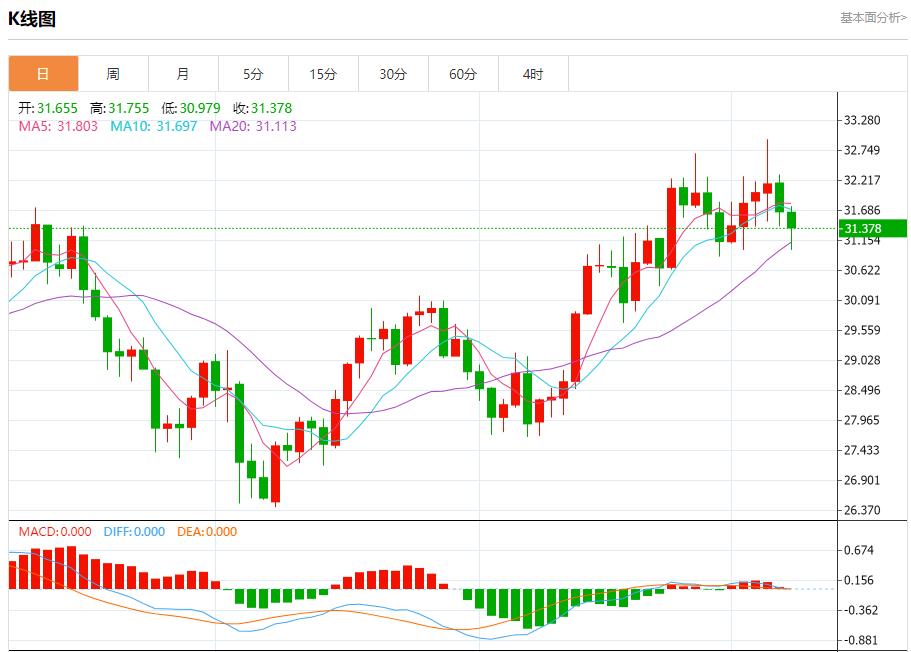 现货白银:截止北京时间20:20,现货白银下跌,现报31.376,跌幅0.90%。纽市盘前,白银价格再次测试31.00美元水平,并面临坚实的支撑,等待获得负面动机,协助推动价格突破这一水平,并确认今天剩余时间内熊市趋势的延续,提醒您我们主要等待的目标位于30.06美元。
