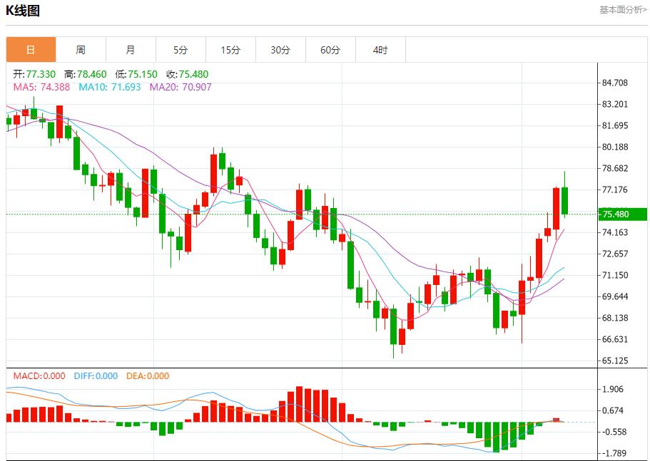 原油市场:截止北京时间20:20,美油下跌,现报75.490,跌幅2.09%。纽市盘前,原油价格显示了额外的负面交易,达到75.36美元的水平,注意到RSI继续提供负面信号,以支持突破这一水平的机会,并打开了在日内基础上延长熊市的道路,以接近下一个主要目标73.48美元。