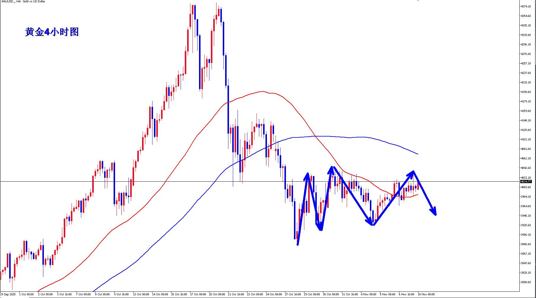 黄金4小时也整体还是在大区间内震荡,黄金短期重要阻力区域再4030上方,如果不能突破有效站稳4030上方的支撑,那么黄金短线还是需要留意继续承压高位冲高回落,这也是黄金最近的主要节奏,急涨就冲高回落,急跌就探底回升。黄金早盘承压4030上方区域阻力还是继续逢高空。