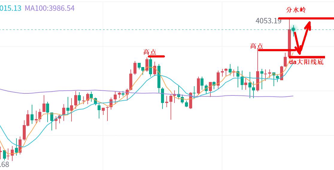 同时,判断震荡还有一个办法,欧盘,欧盘能否延续,如果欧盘上去不,压制在早间高点4053下方,那么晚间一定是震荡,而且会被打下去。