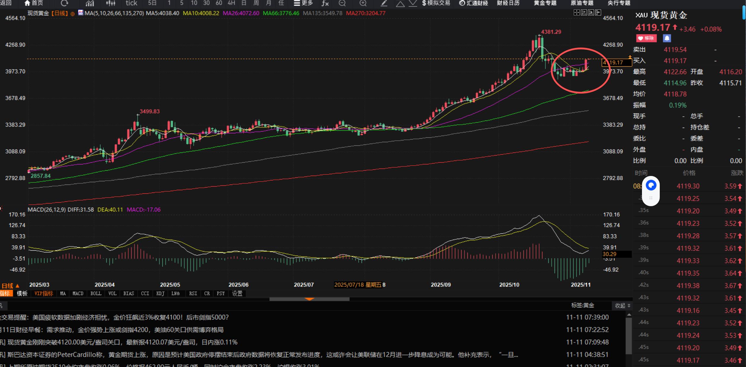 【XM外汇决策分析】:11.11黄金光阳破中轨,后市继续看高一线