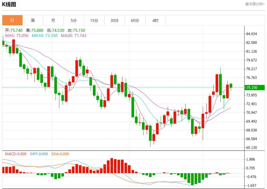原油市场:截止北京时间20:20,美油下跌,现报75.210,跌幅0.80%。纽市盘前,原油价格现在面临明显的负面压力,以攻击75.65美元的水平,并试图保持在该水平以下,这促使人们在即将到来的交易中保持谨慎,因为确认突破并最初在该水平以下收盘4小时将使价格在即将到来的交易中面临负面压力,以在任何新的上涨尝试之前测试73.70美元的区域。