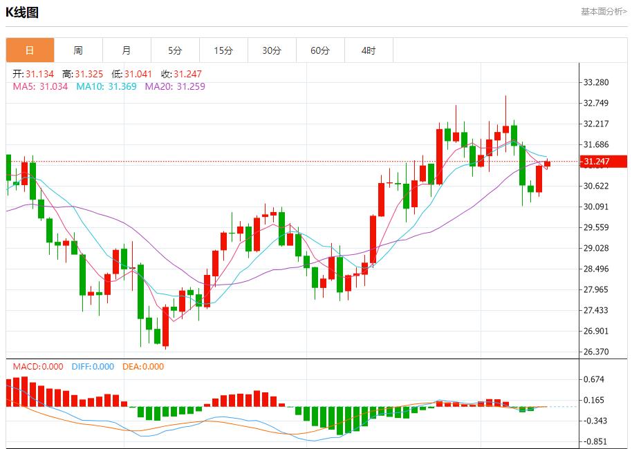 现货白银:截止北京时间20:20,现货白银上涨,现报31.265,涨幅0.41%。纽市盘前,白银价格在EMA50附近波动,受到随机负面因素的影响,阻碍了继续上涨的使命,只要价格高于31.00美元,我们今天的看涨观点将保持有效,等待获得积极的动机,以帮助推动价格达到我们的目标,从31.70美元开始,延伸到32.50美元。