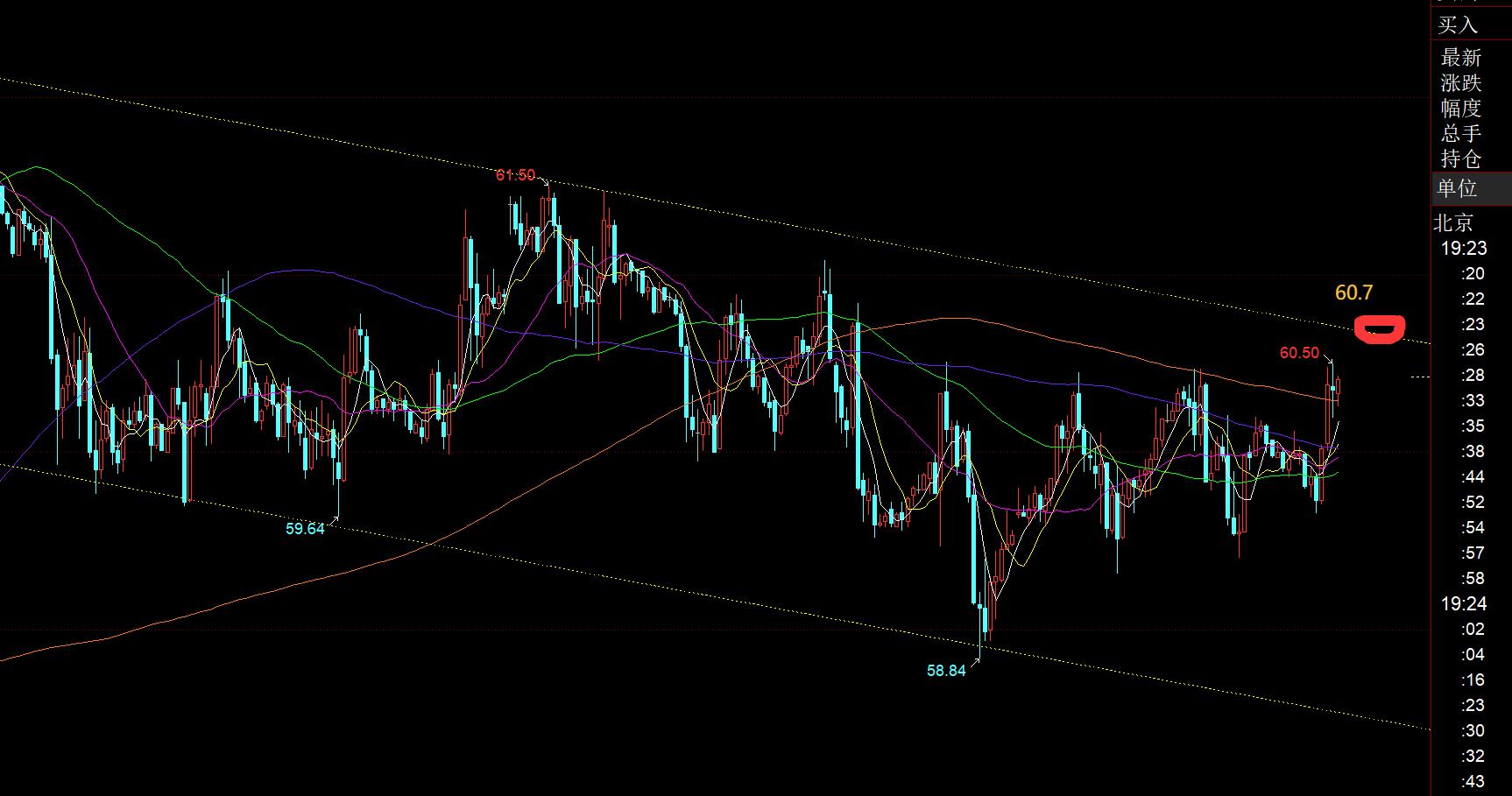 原油方面:小通道上轨60.7一线得失关注下,若今晚触及承压,则容易冲高回落,继续来回震荡整理;