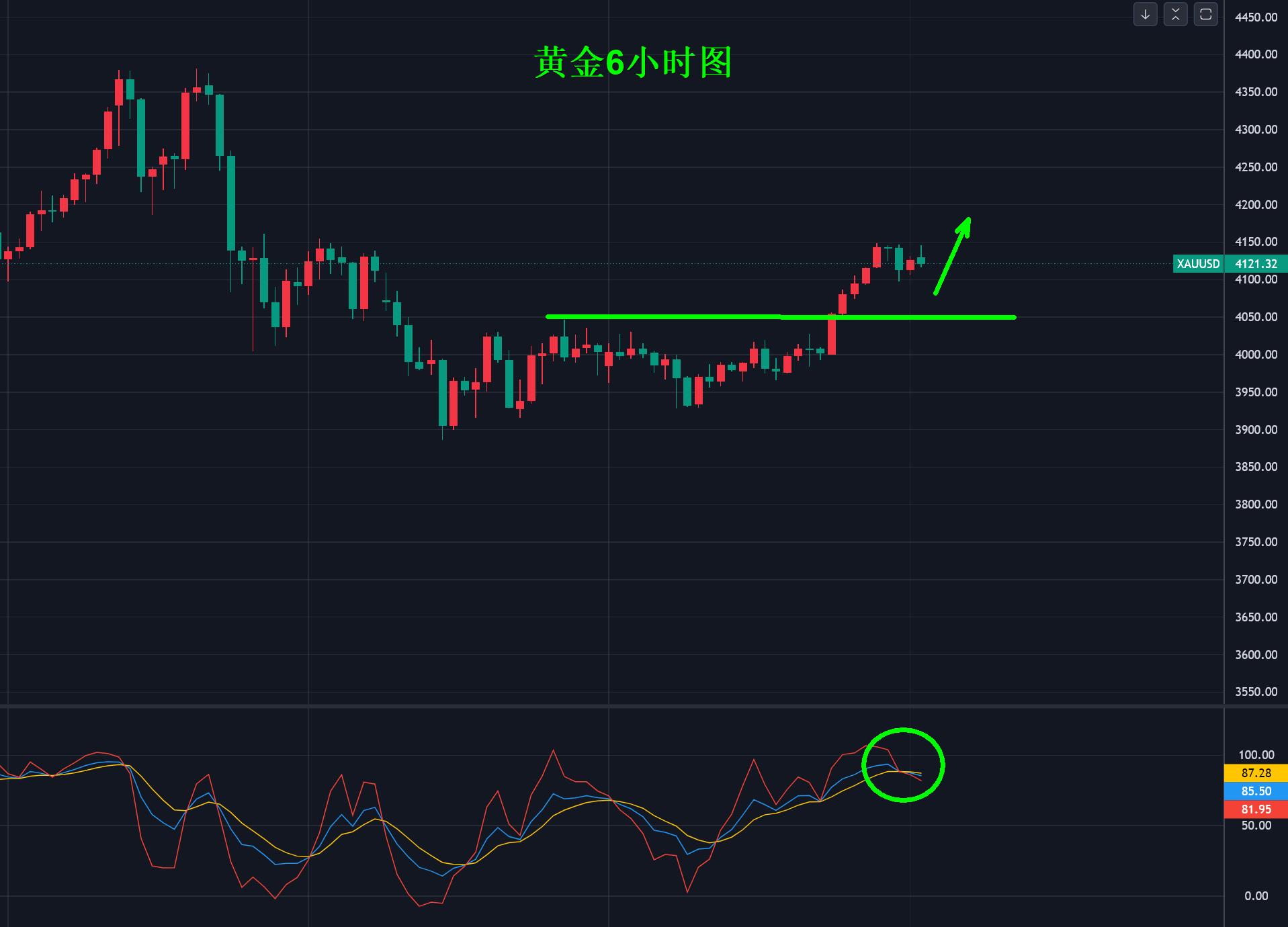 目前,金价止步于4120美元,两次反弹都没有突破此位置,而回调之后的强支撑在顶底转换4060-50美元,这里前期多次压制多头反弹,突破后形成顶底转换,也就是说有两个位置多,一个是金价再次站上4120美元回踩确认,另一个则是在顶底转换的位置4060-50美元。