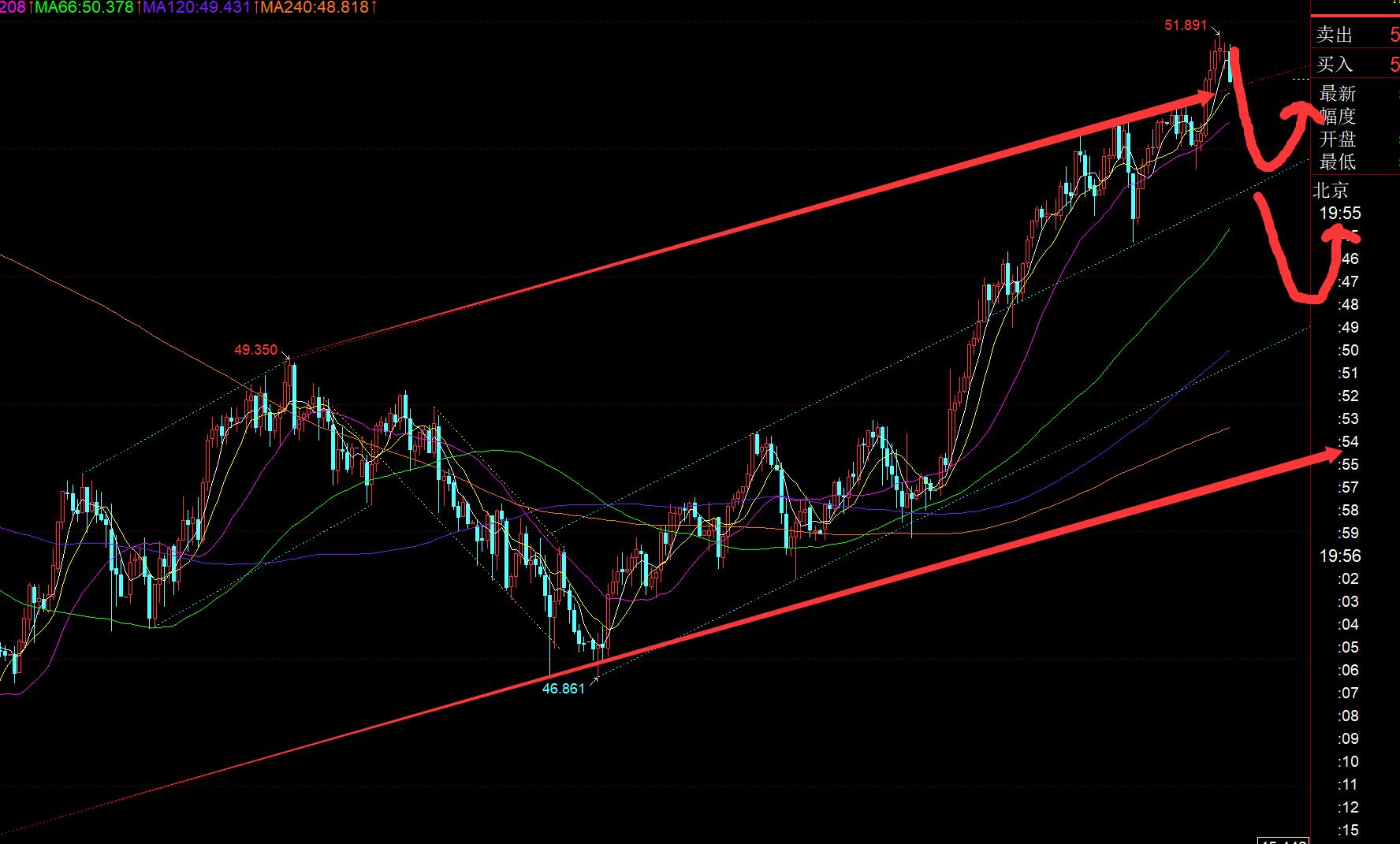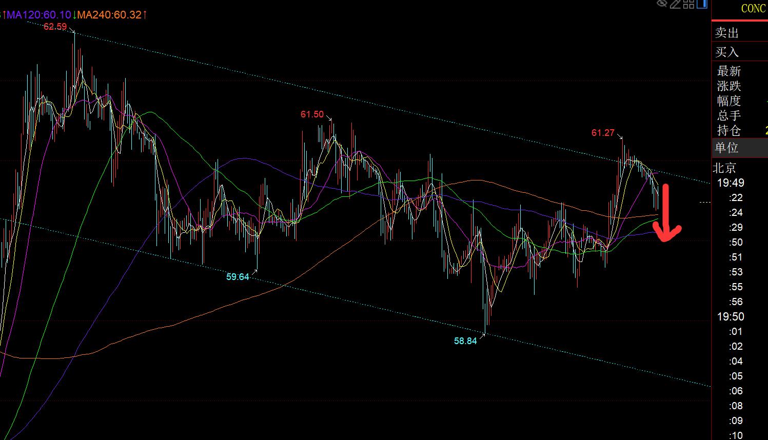 原油方面:它就是按震荡对待,空间也比较小,走的比较缓慢,通道上轨承压回落,今晚关注60.2支撑,失守则留意59.8-59.6,再下去就会打开空间,逐步指向下轨;
