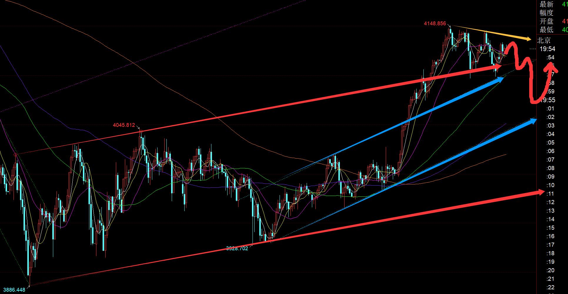 第一,黄金方面:昨日亚盘继续强势续涨一波,则午后小幅回踩依托4133上强势跟随看涨,抵达4144提示盈利,并且提示若欧盘突破日内高点继续拉升,美盘还有二次拉升;但美盘前始终维持高位整理,并未突破新高,则不宜高位再盲目跟涨;晚间研报指出,留意小时线10日,一旦有效失守,则逼空结束,会带来短线的一波下跌修正,最终是跌到了4096,后半夜企稳反抽;其实,从日线级别而言,4096位置并未修正到位,至少中轨4085一线需要去回踩确认;