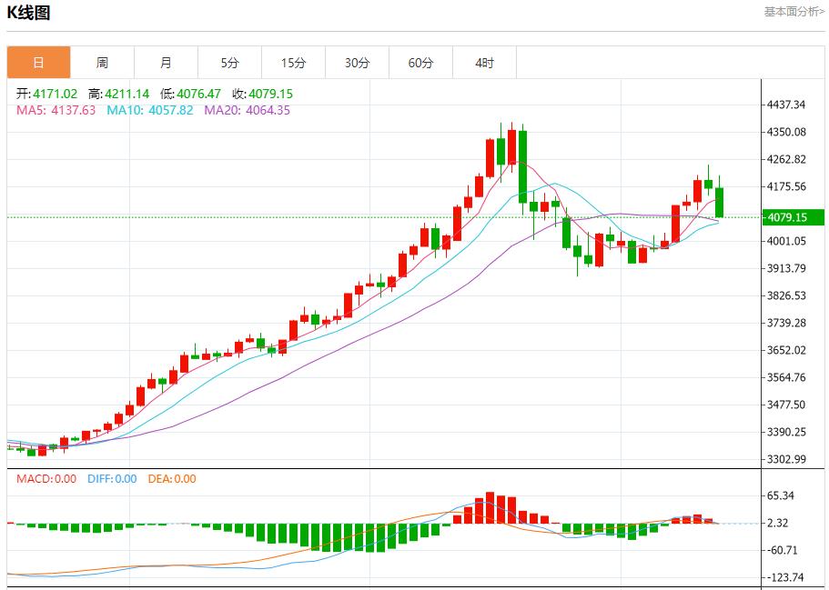 现货黄金:截止北京时间21:20,现货黄金下跌,现报4080.19,跌幅2.15%。纽市盘前,(黄金)价格在最后一个盘中交易中下跌,以寻找上涨低点,将其作为基础,以帮助其获得复苏所需的看涨动力,因为来自EMA50上方交易的积极压力仍在继续,并且在短期基础上的小幅看涨波和沿趋势线交易的主导下。