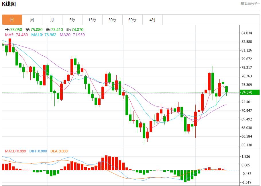 原油市场:截止北京时间20:26,美油下跌,现报74.080,跌幅1.95%。纽市盘前,原油价格今天开盘时出现空头缺口,价格低于75.65美元水平,但我们注意到EMA50对价格形成了良好的支撑,以支持回补这一缺口的机会,并再次在上述水平上方交易,表明在即将到来的交易中看涨,注意到下一个主要目标将延伸至77.00美元,然后是78.78美元区域。