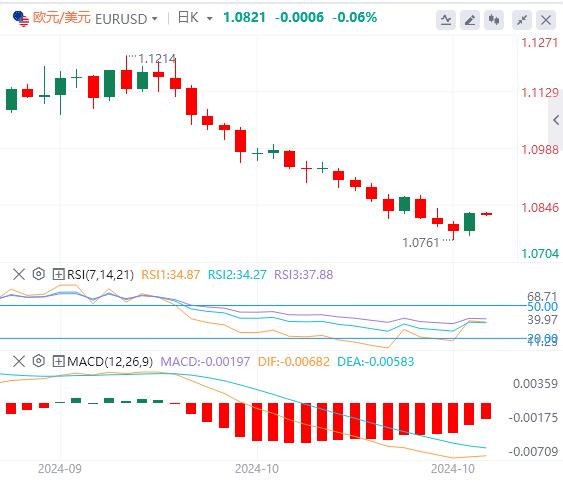 美元指数:截止发稿,美元指数交投于104.08附近。美元此次回调归因于美国公布好坏参半的经济数据后获利回吐,尽管美国标准普尔PMI预览数据发出积极信号,表明商业活动强劲,但美元仍出现下跌,并将在下个交易日盘整。技术面上,如果美元指数收于104.00水平以下,它将向最近的支撑位移动,即103.40–103.60区间。