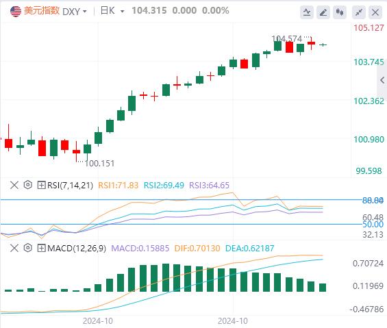 周一,美元指数先涨后跌,最终收跌0.03%,报104.29,截至目前,美元报价104.31。