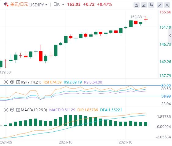 美元/日元本周开盘看涨跳空,并触及近三个月来的最高水平154.00附近。截至发稿时,该货币对的交易价格略低于153.50,当日上涨约0.7%。欧元/日元交叉盘上次上涨超过0.6%至165.50,英镑/日元上涨0.7%至198.70,凸显了围绕日元的抛售压力。