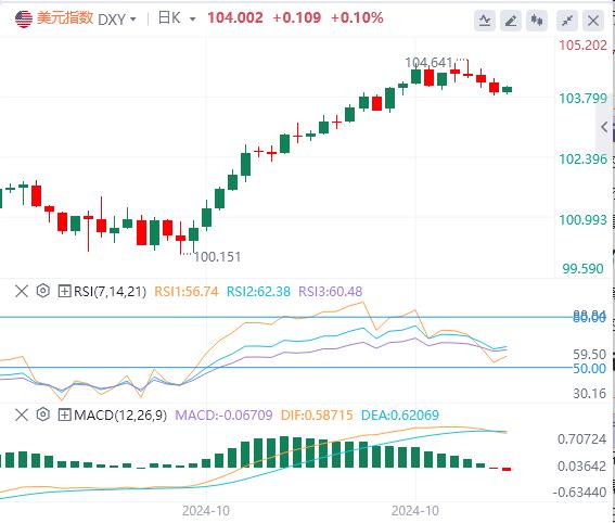 周四,美元指数在美盘有所上涨,但随后快速下跌并失守104关口,截至目前,美元报价104。