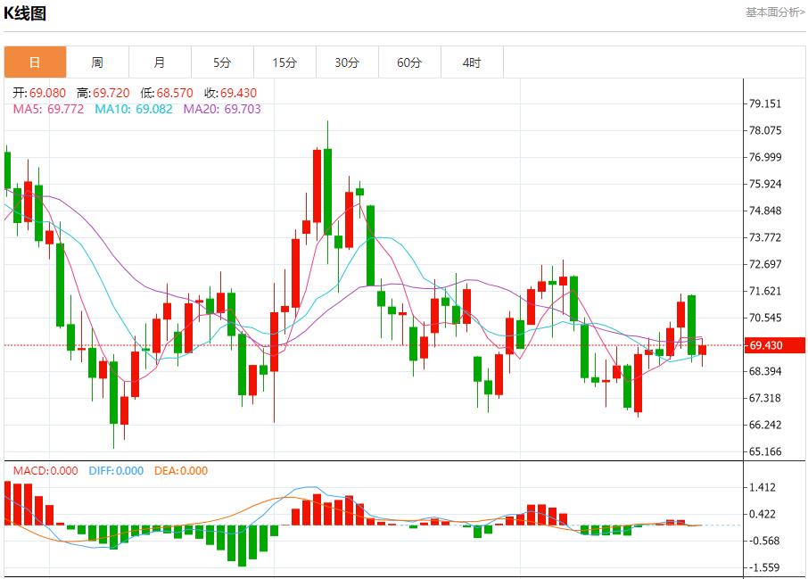 原油市场:截止北京时间21:21,美油上涨,现报69.40,涨幅0.68%。纽市盘前,原油价格现在显示出看涨倾向,以支持未来几个交易日上涨的预期,实现我们等待的目标70.58美元的道路是开放的,注意突破这一水平将延长牛市,在近期达到72.15美元。