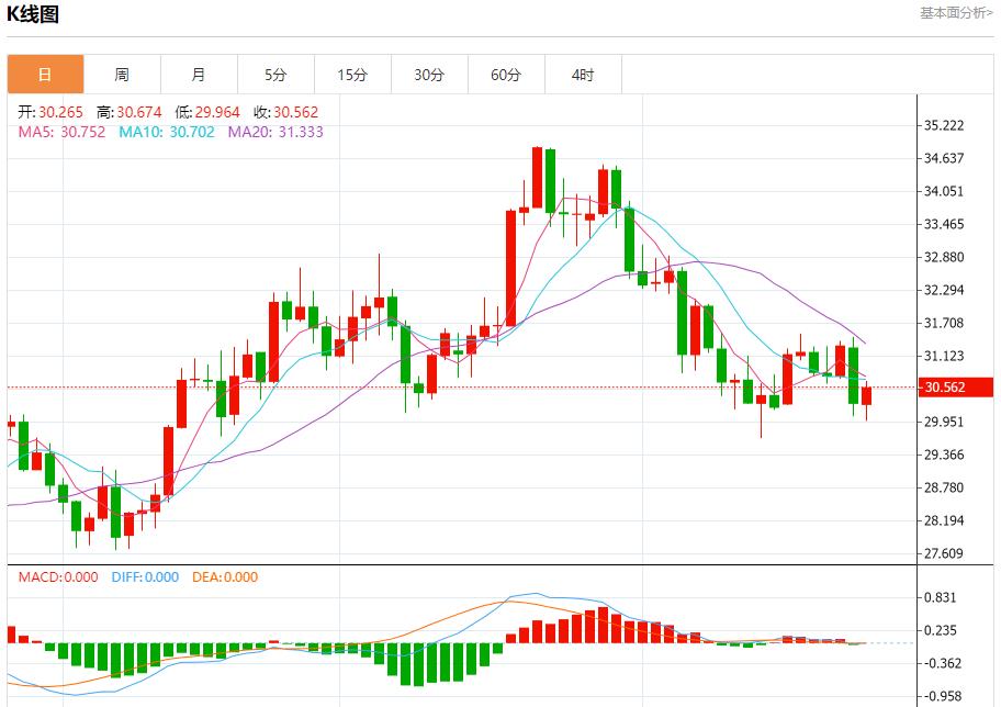 现货白银:截止北京时间21:21,现货白银上涨,现报30.55,涨幅0.85%。纽市盘前,白银价格稳定在30.63美元以下,以保持今天熊市趋势的有效性和活跃性,等待负面动机推动价格达到我们在29.64美元xn--xm-6d1dw86k.com的预期目标,打破它代表着反弹至29.00美元作为下一个负站的关键,而预期的下跌将保持有效,除非突破30.63美元并保持在其上。