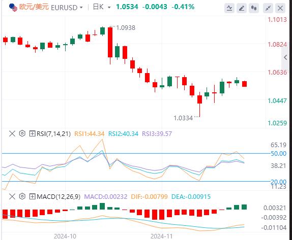 美元指数:截止发稿,美元指数徘徊在106.14附近。美元指数上周周收于105.782,下跌1.59%,创下四个月来的最大单周跌幅。此次回落是在最近飙升至两年高点108.071之后的回落,因为交易员重新评估了通胀风险和美联储对12月的政策预期。技术面上,美元指数设法从盘中低点反弹,并试图回到106.00–106.15的支撑位上方。如果这次尝试成功,美元指数将向106.63的50MA移动。