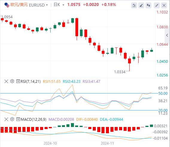 继周四举棋不定的走势之后,欧元/美元受益于美元再度走软,于周五欧洲时段早盘升向1.0600。德国周四公布的数据显示,11月消费者物价指数(CPI)月率速测下降0.2%,符合市场预期。